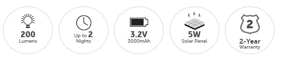 a 200-lumen warm white glow (2700K), casting inviting light for outdoor entertaining,